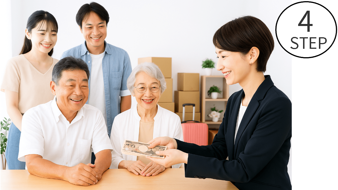 査定金額にご納得いただけましたら、買取をします。大量処分であっても即日現金で買い取りします。