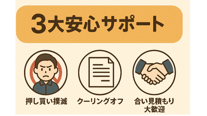 お引き取り成立後、8日以内であればクーリングオフができます。お気軽にお問い合わせ下さい。