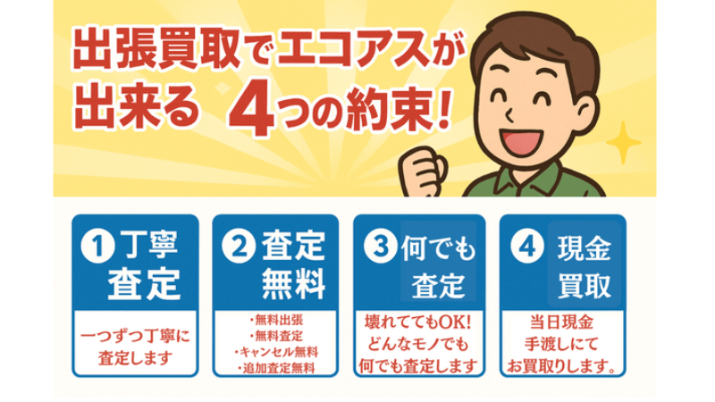 エコアスは、人生のさまざまな節目に寄り添う「何でも査定」の総合リユース専門店です。